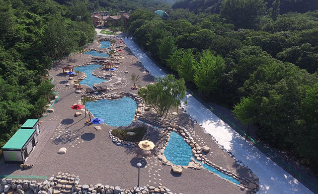 야외 풀은 자연석으로 주변의 울창한 숲과 어우러져 아름다운 경관을 자랑하며 지하수와 계곡수를 수원으로 사용한 자연친화적 시설이다.