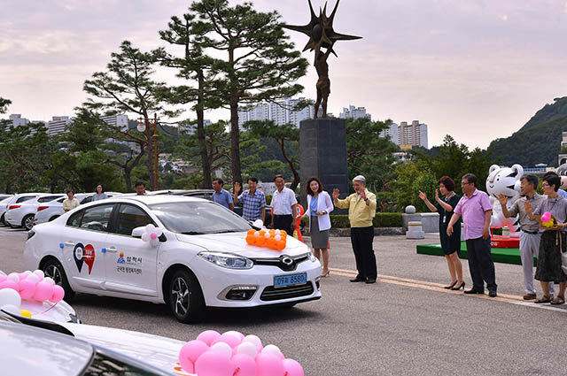 강원 삼척시는 현장 중심의 찾아가는 맞춤형 복지행정을 추진하기 위해 7일 시청 본관 광장에서 읍면동별로 1대씩 총 12대의 맞춤형 복지차량 전달식을 가졌다.
