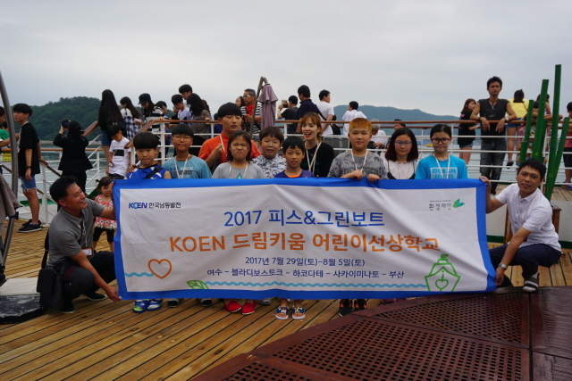 KOEN 어린이 선상학교는 환경재단과 일본 NGO단체 피스보트가 공동 주최하는 크루즈 여행 교류 프로젝트인 ‘2017 피스 & 그린보트’에 남동발전 발전소 주변지역 아동들이 참여해 이뤄졌다.