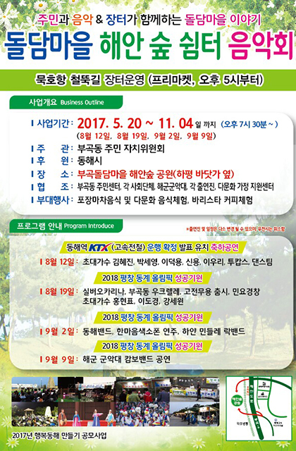 행사 장소인 부곡돌담마을 해안 숲 공원은 지난 2002년 태풍 루사 이후 주민이 자체적으로 숲 공모사업을 추진하는 등 주민의 자율적휴식 및 문화 공간으로 활용되고 있다.
