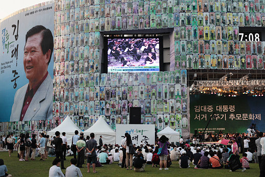 문성근, 오정해 씨가 사회를 본 이번 문화제에는 김 전 대통령의 부인인 이희호 여사를 비롯해 한명숙 전 총리 등 김 전 대통령 시절 고위직을 지냈던 유력 인사들이 참석해 김 전 대통령 서거 1주기를 기렸다.