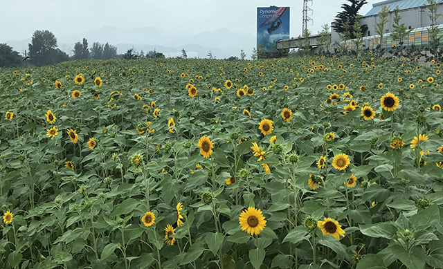 시는 총 1만3600㎡, 6.4킬로미터에 식재한 17만4500본의 해바라기가 최근 개화되면서 황금빛의 꽃동산을 이루었다.