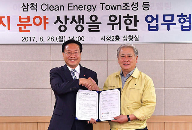 강원 삼척시(시장 김양호)는 지난 28일 한국동서발전(주) 동해바이오화력 본부(본부장 박윤옥)와 2017년도 배정된 발전용 국내무연탄 잔여 물량에 대한 사용협의를 포함한 ‘에너지 분야 상생을 위한 업무협약’을 체결했다.