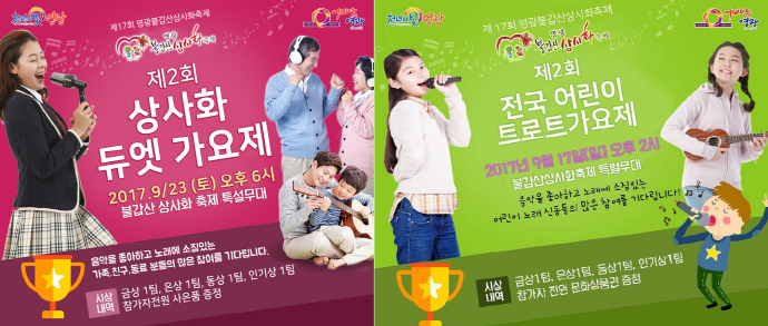 축제추진위원회에서는 총상금 200만원이 걸린 ‘제2회 전국어린이가요제’와 ‘상사화듀엣가요제’의 참가자를 모집한다고 1일 밝혔다.