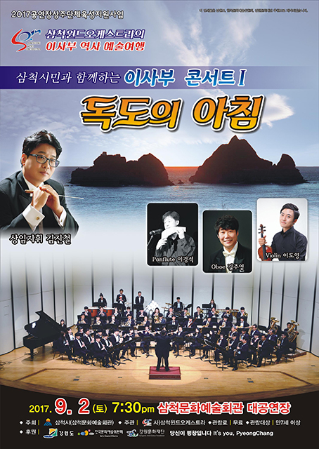 강원 삼척시가 ‘삼척시민과 함께하는 이사부콘서트Ⅰ’의 일환으로 사단법인 삼척윈드오케스트라가 연주하는 ‘독도의 아침’을 오는 대공연장에서 개최한다.