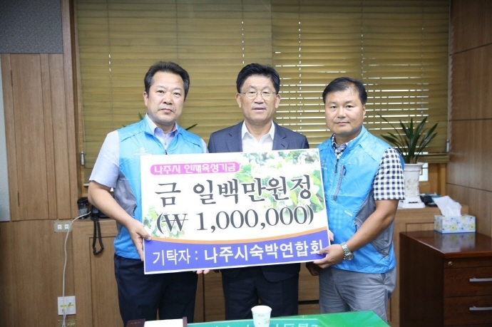 나주시 숙박연합회는 지난 8월 31일, 강인규 나주시장을 찾아 인재육성기금 100만원을 나주교육진흥재단에 기탁했다.