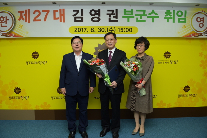 장성군은 김영권 부군수가 8월 30일 유두석 장성군수로부터 사령장을 받고, 취임식을 대신해 각 실과를 방문해 직원들과 직접 인사하며 일정을 시작했다고 전했다.
