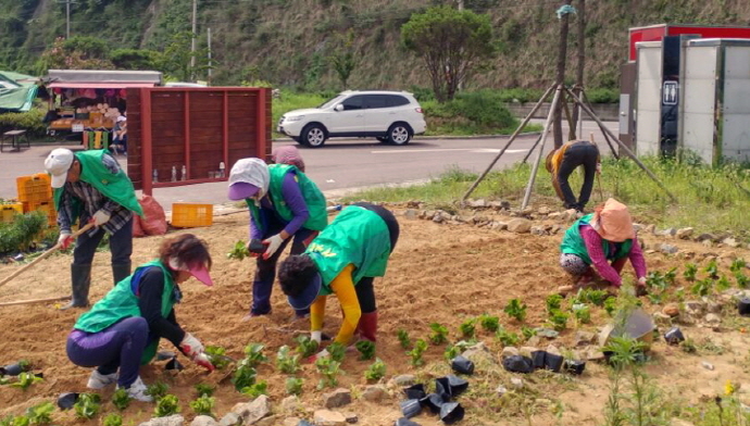 묘도동은 사계절 꽃피는 동을 만들기 위해 주민들의 적극적인 참여 속에 계절에 맞는 꽃밭을 조성해오고 있다.