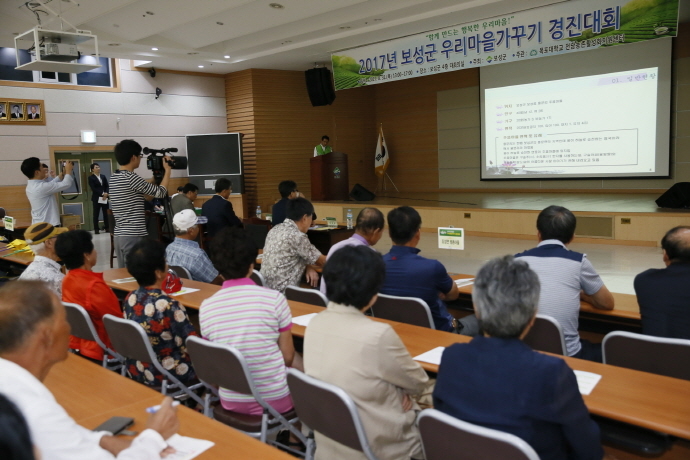 보성군은 지난 8월 31일 군청 대회의실에서 8개 마을 대표 및 주민 등 200여명이 참여한 가운데 ‘함께 만드는 행복한 우리마을!’ 이라는 슬로건으로 ‘2017년 보성군 우리마을가꾸기’ 경진대회가 열렸다.