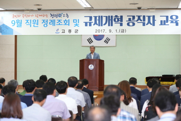 고흥군은 지난 1일 군청 대회의실에서 직원 300여 명을 대상으로 새 정부의 규제개혁 추진방향에 대한 이해도를 높여 현장 중심의 규제개혁을 추진하는 특별교육을 실시했다.
