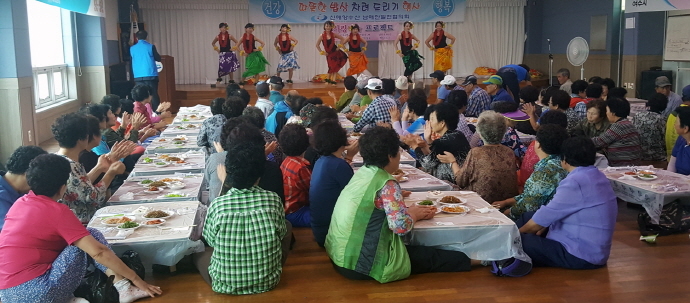 남해안발전협의회는 지난 4일 중앙동 어르신 150여명을 동 주민센터로 모시고 설렁탕과 다과를 대접했다.