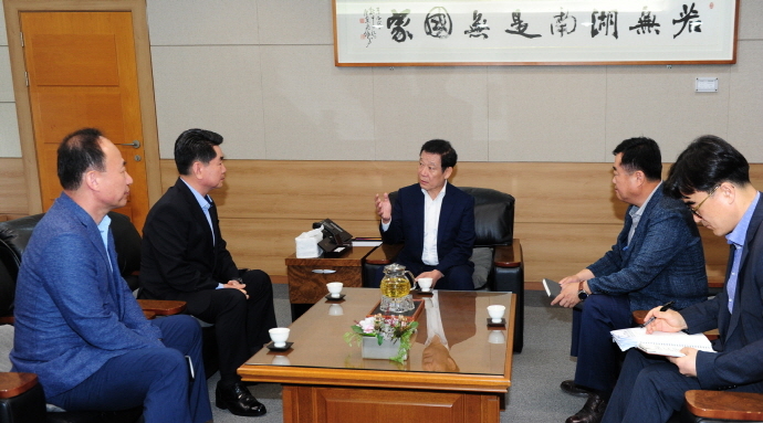 윤장현 광주광역시장은 5일 오전 시청 3층 접견실에서 이한섭 금호타이어 사장을 만나 현안에 대해 의견을 나눴다.