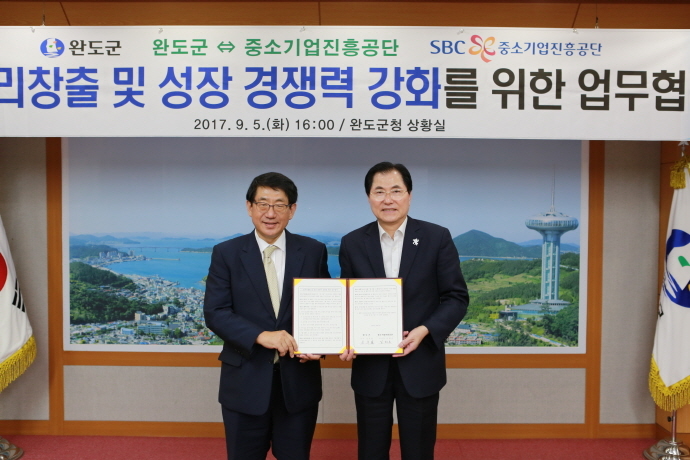 완도군과 중소기업진흥공단은 지난 5일 완도군청 상황실에서 일자리창출 및 중소기업 성장 경쟁력 강화를 위한 업무협약을 체결했다.