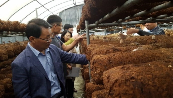 장흥군버섯산업연구원 재배시험장에서는 백화향, 산조303호 등 원목재배용 국산품종을 관찰하고, 국산품종의 보급 확대와 자급률 제고 방안에 대한 심도 있는 토의를 가졌다.