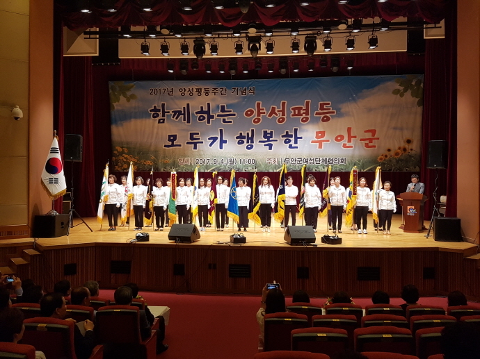 무안군여성단체협의회는 지난 4일 승달문화예술회관 대공연장에서 ‘함께하는 양성평등, 모두가 행복한 무안군!’이라는 슬로건 아래 2017년 무안군 양성평등 기념행사 ‘황토골 문화축제’를 개최했다.