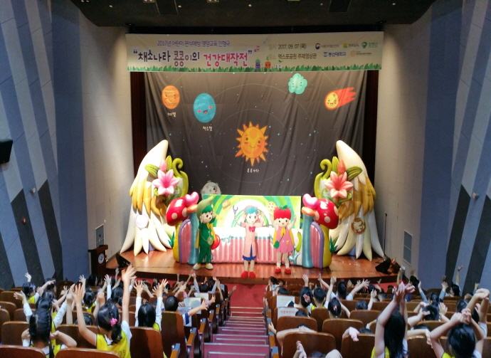 ‘건강대작전 채소나라 콩콩이’라는 제목의 이 공연은 패스트푸드를 선호하는 아이들이 건강하고 균형있는 식습관을 갖도록 돕는 내용으로 구성됐다.