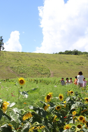 군은 지난 6월부터 시가지에 꽃화분을 배치하고 자투리땅, 산책로 등 가로경관에 해바라기와 코스모스를 심어 대대적인 꽃세상을 가꾸고 있다.