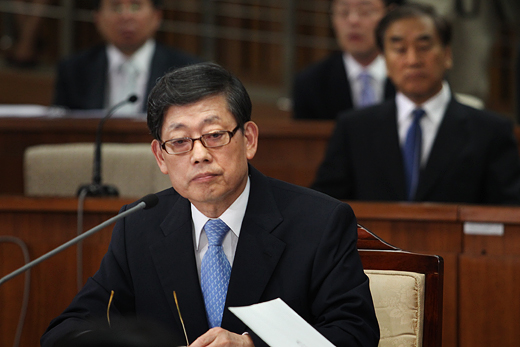 ▲ 29일 청문회장에서 답변 중인 김황식 국무총리 후보자 ⓒ프레시안(최형락)