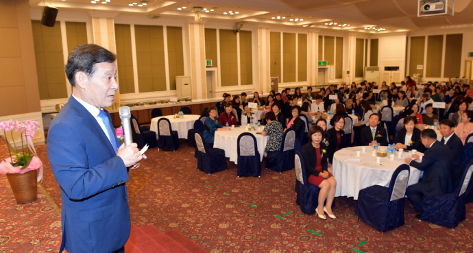 윤장현 광주시장이 11일 상무리츠컨벤션에서 열린 어린이집 원장 연찬회에 참석, 보육 교직원들을 격려했다.
