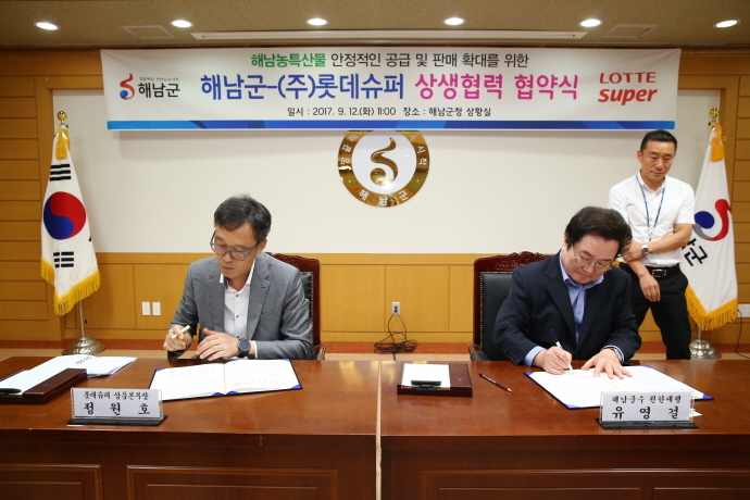 해남군이 슈퍼마켓 업계 1위인 롯데슈퍼와 농특산물 판로확대를 위한 업무협약을 체결했다.