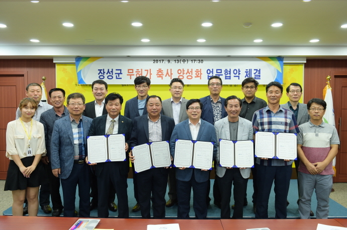 이를 위해 장성군은 13일 대한건축사회 장성군협회, 장성축산업협동조합, 전국한우협회 장성군지회, 대한한돈협회 장성군지부와 함께 업무협약을 맺었다. 무허가 축산농가의 폐업을 방지하고 지속 가능한 축산업을 영위하기 위해 무허가 축사를 양성화하며, 양성화를 원활하게 추진하기 위해 장성군과 장성군건축사협회, 축협 등이 적극 협력한다는 게 이번 업무협약의 골자다.