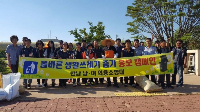 나주시 반남면 의용소방대는 이달 제 3회 마한문화축제와 내달 추석명절을 앞두고 깨끗한 지역 이미지 제고를 위해 지난 14일, 주요 도로변, 마을 공터, 쓰레기 상습투기 지역 등 관내 곳곳을 돌며, 대대적인 환경정화활동을 펼쳤다.