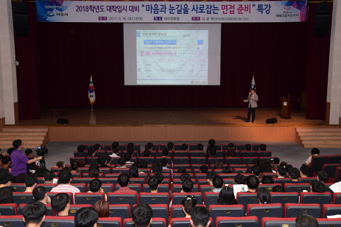 앞서 시는 지난 16일 여수문화홀에서 김용택 한국대학교육협의회 대표강사를 초빙해 수시면접 준비 특강을 진행했다.