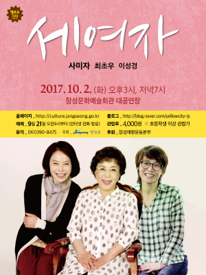 장성군은 임시공휴일로 지정된 다음 달 2일 오후 3·7시 두 차례 대공연장에서 추석맞이 특별 공연으로 사미자 주연의 연극 ‘세 여자’를 선보인다고 18일 밝혔다.