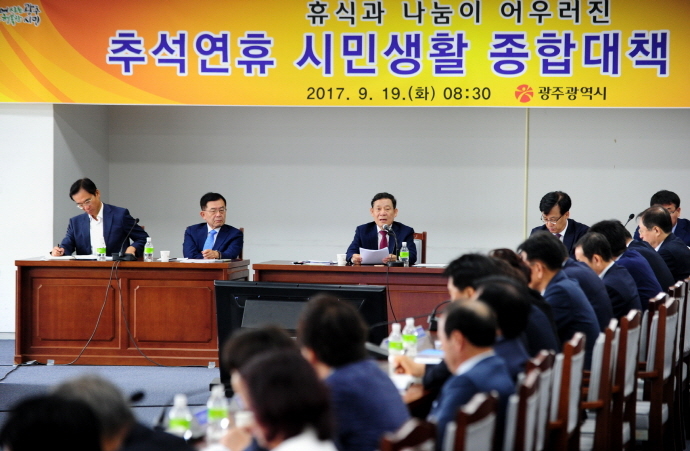 광주시는 19일 윤장현 시장 주재로 확대간부회의를 열고, 사상 최장 10일에 이르는 명절 연휴에 대비한 ‘추석연휴 시민생활 종합대책’을 점검했다.