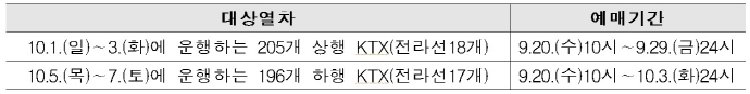 조형익 코레일 전남본부장은 “추석 기간 저렴하고 편안한 여행을 제공하기 위해 KTX 역귀성상품을 운영하고 있으므로, 긴 연휴기간 KTX를 타고 편안하고 안전하게 고향을 방문하시기 바란다.”고 밝혔다.