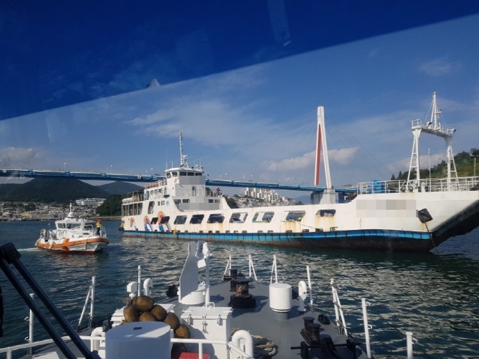 여수해양경찰서는 “오늘 오후 2시 26분경 여수시 돌산 1대교 아래 해상에서 여수에서 소리도로 가기 위해 출항한 여객선 K 호(255톤, 승객 94명, 선원 4명, 차량 7대)가 조타기 유압호스 개통에서 고장을 일으켜 긴급 투묘하겠다는 선장의 신고”를 받았다.
