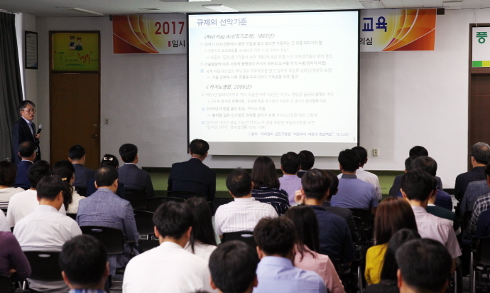 이날 교육은 서왕장 행정자치부 지방규제혁신과 사례팀장을 초청해 ‘규제개혁의 방향과 지방공무원의 역할’을 주제로 진행됐다.