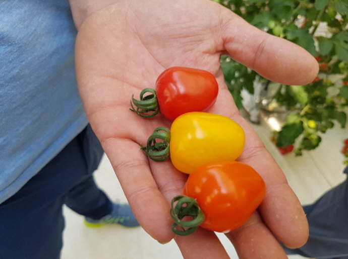 ‘애플토마토’는 방울토마토 이지만 모양이 사과 모양으로 일반토마토의 부드러운 식감과 방울토마토의 당도를 지니면서, 빨강·노랑·주황색으로 총 3가지 색깔로 모양과 색이 독특해 소비자들에서 각광을 받고 있다.