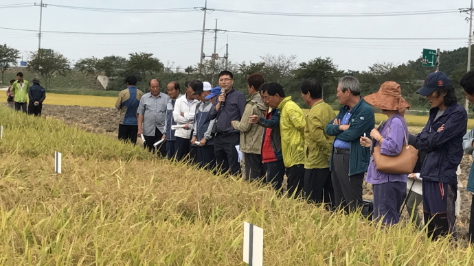 군은 22일 시범농가 등 120여명이 참석한 가운데 새기술 시범사업 포장, 전남농업기술원 시험포 등에서 고품질 쌀 생산 추진상황 평가를 위한 2017 벼농사 종합평가회를 가졌다.
