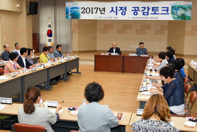 한편, 2015년부터 시작한 ‘시정공감 토크’는 각 마을의 대표자로서 주민들의 생활 깊숙한 곳까지 잘 알고 있는 이·통장들과의 만남을 통해 시정 전반에 대한 의견을 수렴하고 이를 정책에 반영하기 위해 추진되고 있다.