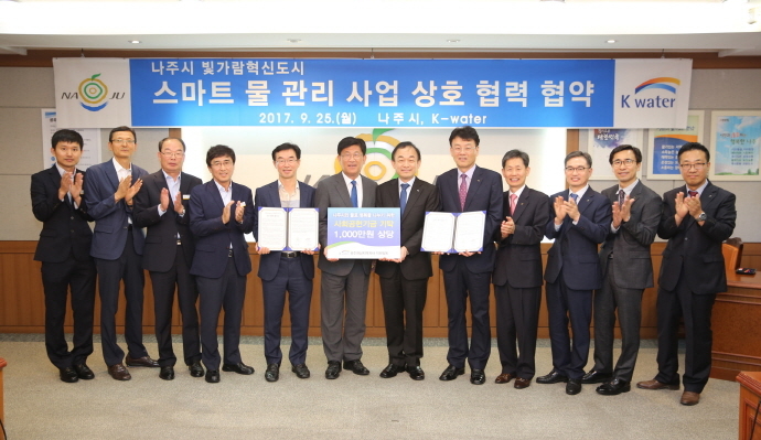 나주시는 K-water와 광주·전남 최초로 ‘스마트 물 관리’ 체계를 적용하는 ‘빛가람 혁신도시 스마트 물 관리’ 상호협약을 25일, 청사 이화실에서 체결했다.