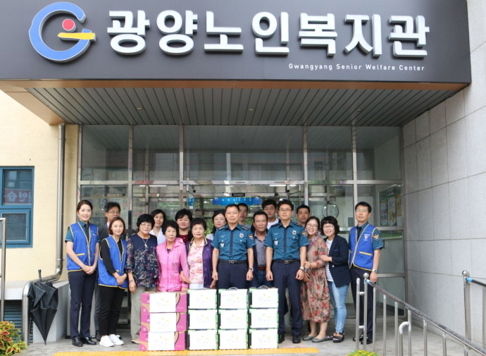 광양경찰서는 27일 민족 고유의 명절인 추석을 맞아 경찰서장 등 청렴동아리 회원 10명이 중마동 중마노인복지관, 광양읍 광양노인복지관을 방문해 과일박스 및 두유 등 위문품을 전달했다.