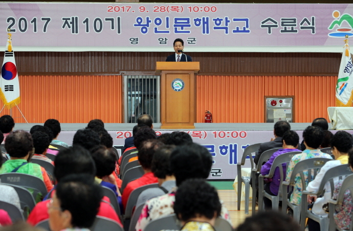 올해로 제10기 수료생을 배출한 영암군 왕인문해학교의 2017년도 수료식 및 체험학습이 지난 9월 28일 영암군 실내체육관 및 농업박물관에서 성황리에 개최되었다.