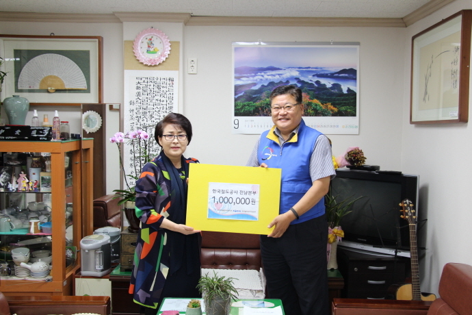 코레일 전남본부 사회봉사단(단장 조형익)은 9월 29일 추석맞이 순천지역 저소득층 가정 대상 ‘즐거운 한가위 선물’ 기금을 전달하였다.