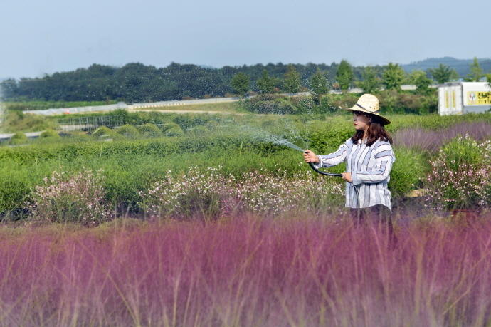 지난 4월부터 박람회장 조경에 사용할 국화와 핑크뮬리 등을 기르는 데 힘쓰고 있다.