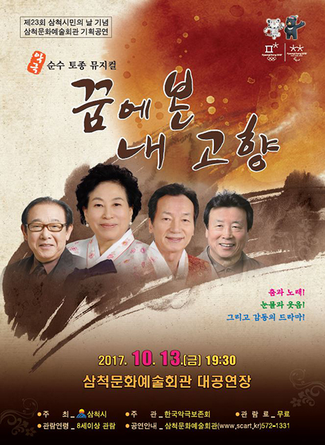 강원 삼척시는 제23회 삼척시민의 날을 맞아 오는 13일 오후 7시 30분 삼척문화예술회관 대공연장에서 악극 ‘꿈에 본 내고향’초청공연을 마련했다.