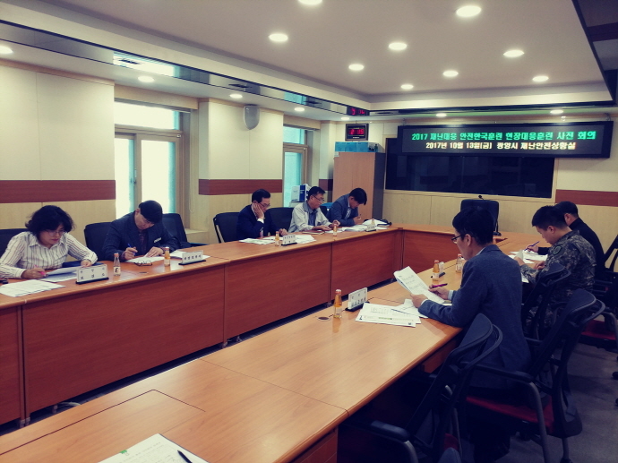 광양시는 10월 30일부터 11월 3일까지 전국적으로 실시되는 ‘2017 재난대응 안전한국훈련’의 차질 없는 추진을 위해 10월 13일 오후 2시 시청 재난안전상황실에서 사전준비 회의를 가졌다고 밝혔다.