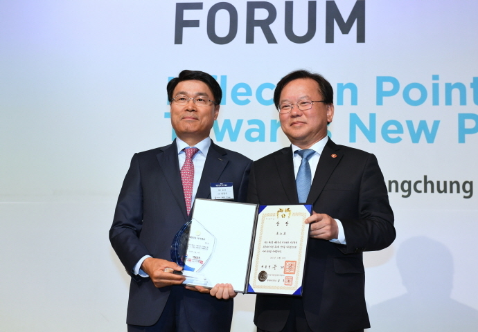 서울 신라호텔에서 개최된 '대한민국 지식대상' 시상식에는 김부겸 행정안전부 장관이 시상하고, 회사 대표로 최정우 사장이 수상했다.