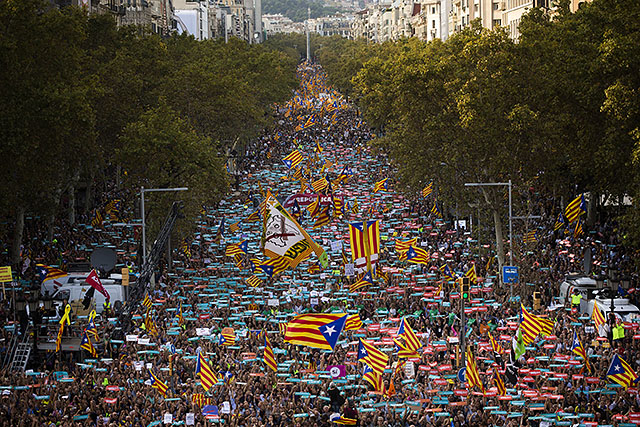 카탈루냐 제1 도시 바르셀로나에서 이날 중앙정부의 결정에 반발하는 대규모 시위가 열린 가운데 이제 관심은 자치정부가 헌법 155조 발동이라는 최후의 보루에 어떻게 맞설지에 쏠려 있다.