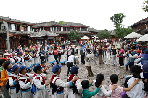 ▲리장 고성 광장에서 현지인들과 어울려 춤추기 ⓒ프레시안