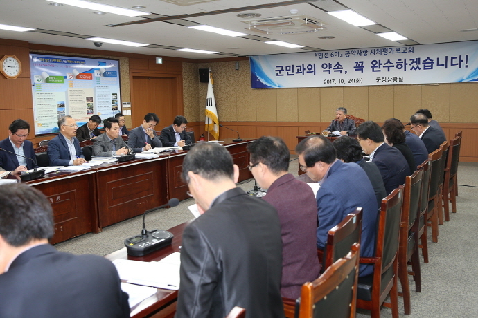군 관계자는 ‘’33개 공약사항의 조기 실현을 위해 분기별로 공약사항을 내실 있게 점검해 나가고 있으며, 11월에는 공약실천의 객관성과 만족도를 확보하기 위해 군정평가위원들의 평가 후 연말에는 군민평가결과보고회를 개최할 것이다‘’라고 밝혔다.
