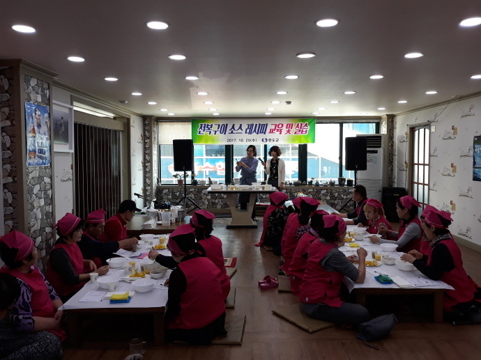 군은 25일 전복 취급 음식점 종사자를 대상으로 ‘전복구이 소스 레시피 교육 및 실습’을 실시하고, 전복 음식 주문 시 1~2가지 소스를 함께 상차림으로 제공하기로 했다.