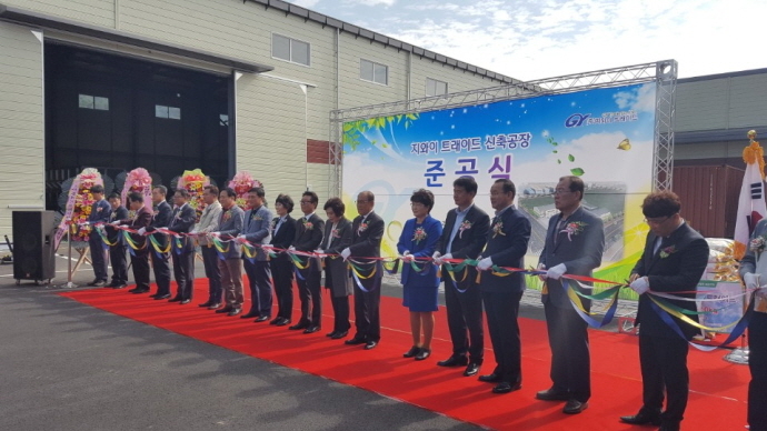 이번에 신축된 사업장은 부지 5,446㎡, 건축 3,414㎡ 규모이며, ㈜지와이트래이드라는 기업으로 새롭게 출발한다.