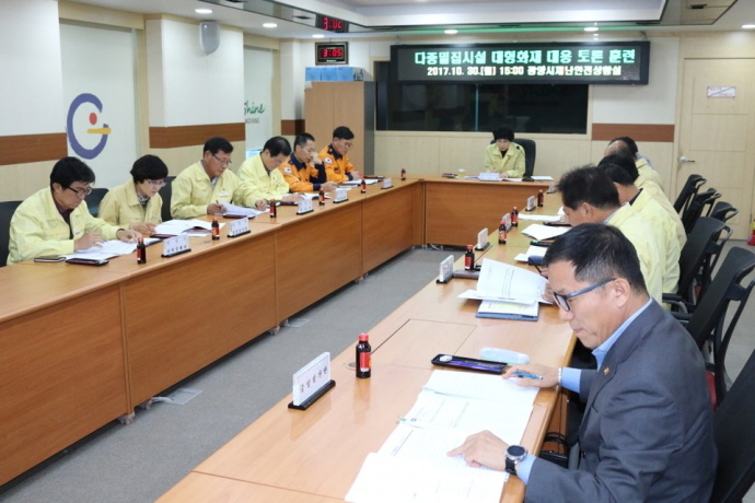 광양시는 10월 30일 오후 3시 시청 재난안전상황실에서 다중밀집시설 대형화재 대응 토론훈련을 가졌다고 밝혔다.