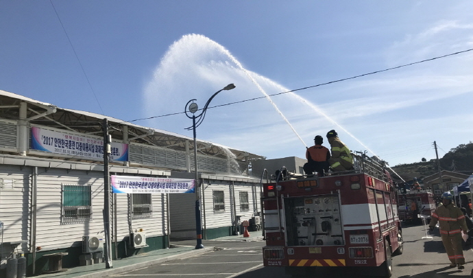 지난 10월 31일 진도읍 조금5일 시장에서 11개 기관·단체 300여 명이 참여한 가운데 다중밀집시설 대형화재 대응 안전한국훈련 현장훈련을 실시했다.